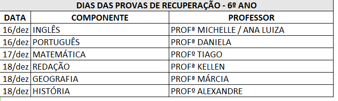 4- Conteúdo da prova de recuperação será informado durante as aulas de recuperação.