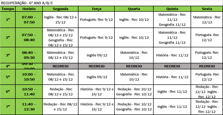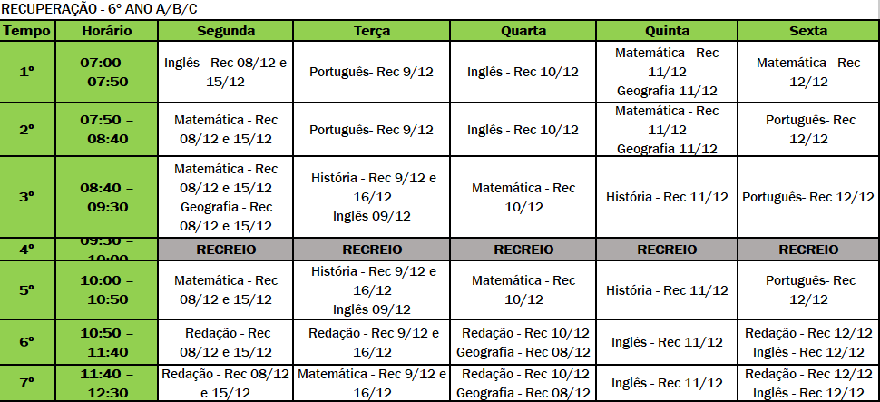 3- Colocaremos no BLOG os horários das aulas de recuperação e, brevemente, os dias das provas.