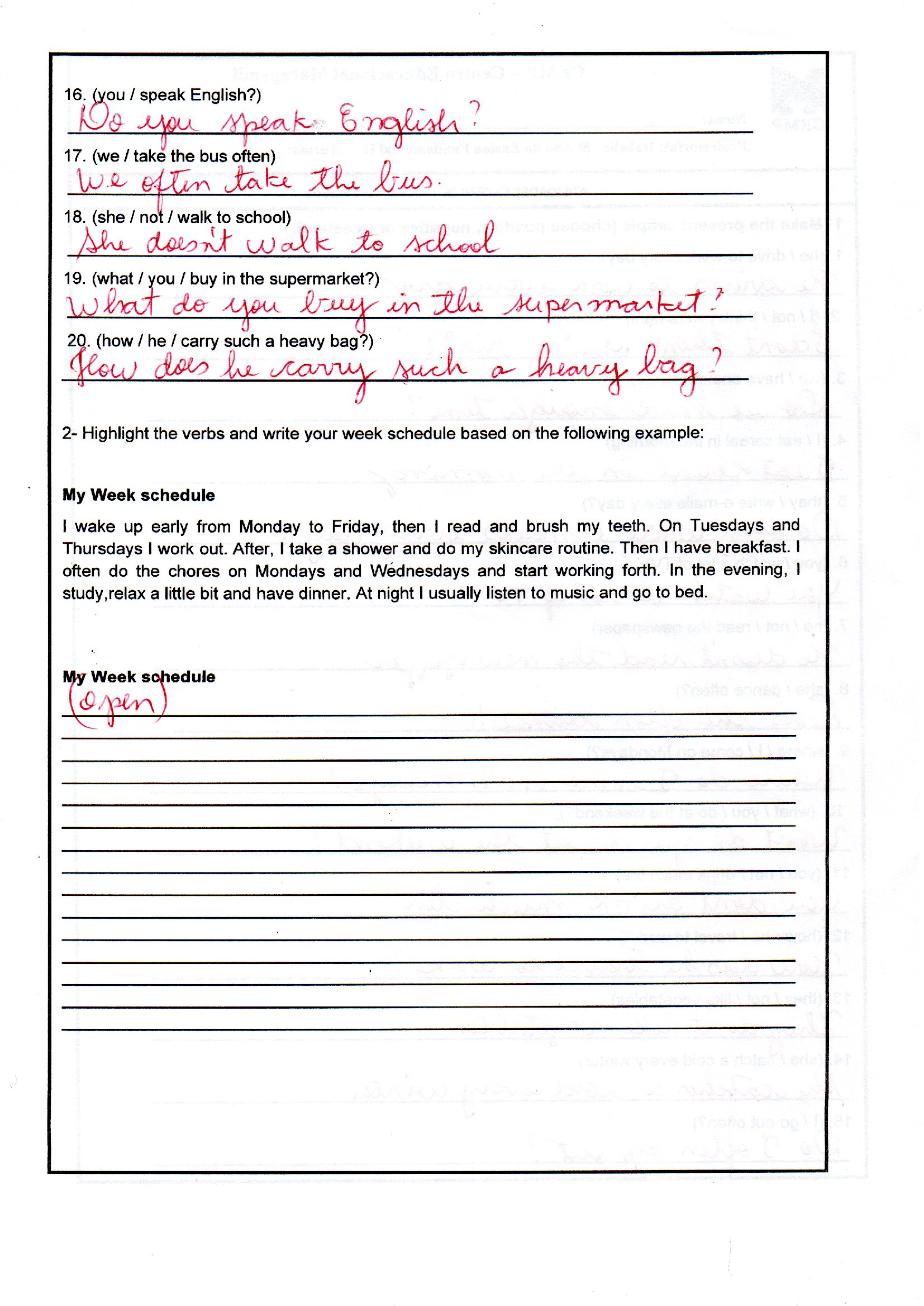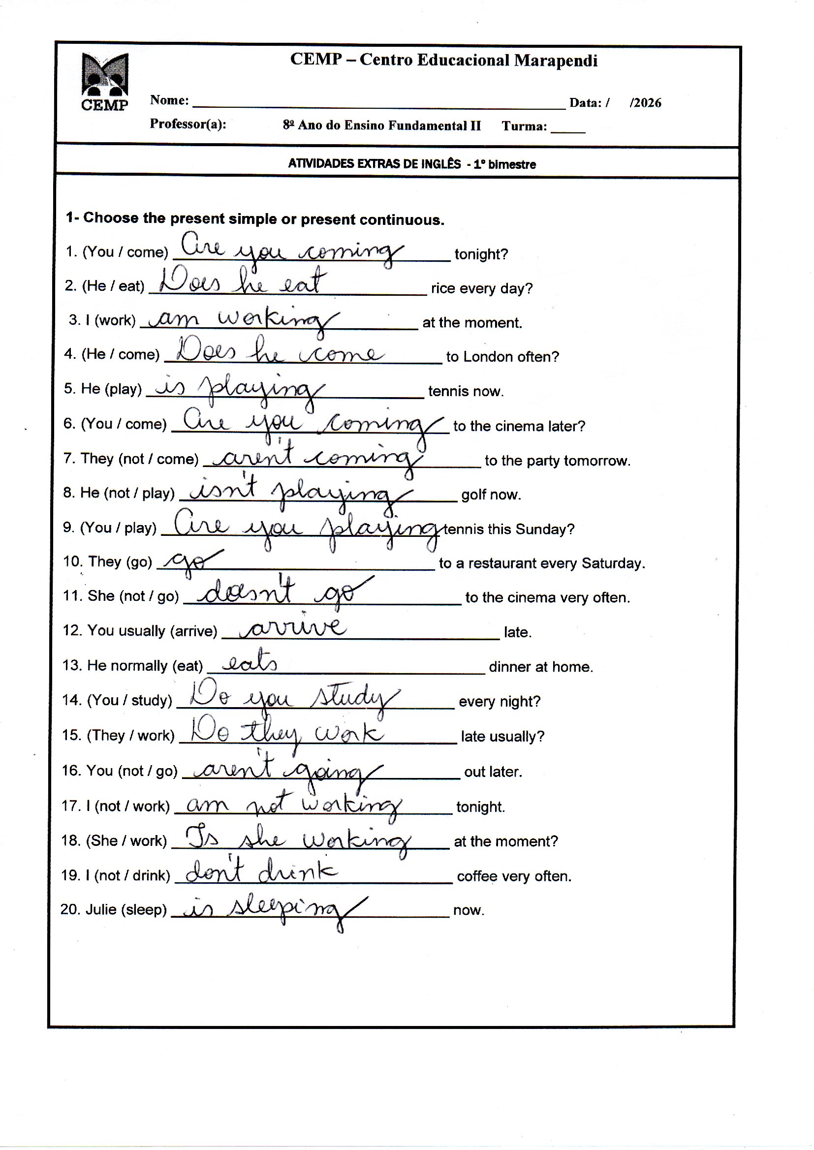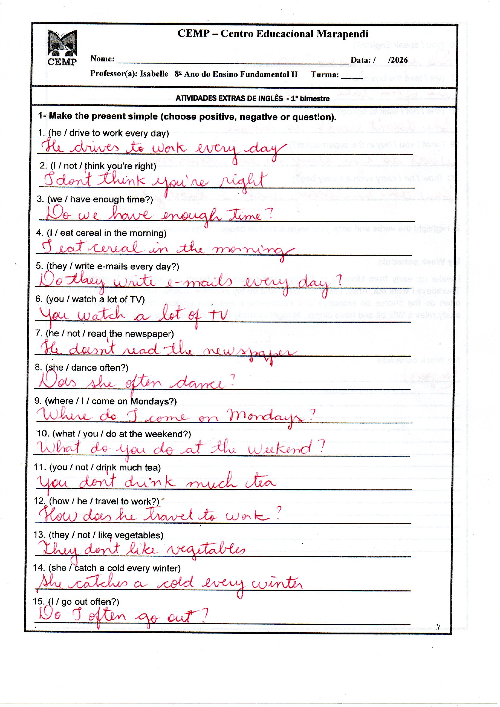 Inglês – Gabaritos das atividades trabalhadas em sala de aula.
