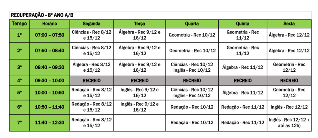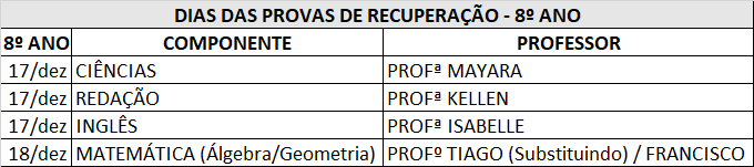 4- Conteúdo da prova de recuperação será informado durante as aulas de recuperação.