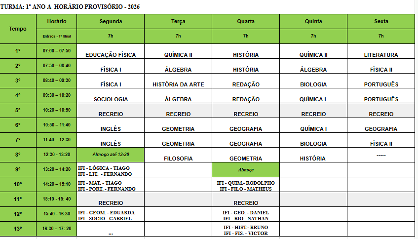 As demais aulas no dia 15, das 7h às 9h30, permanecerão normalmente.