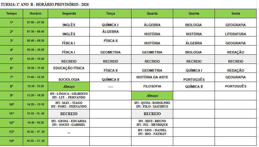 HORÁRIO Provisório – 1º EM – B – 2026