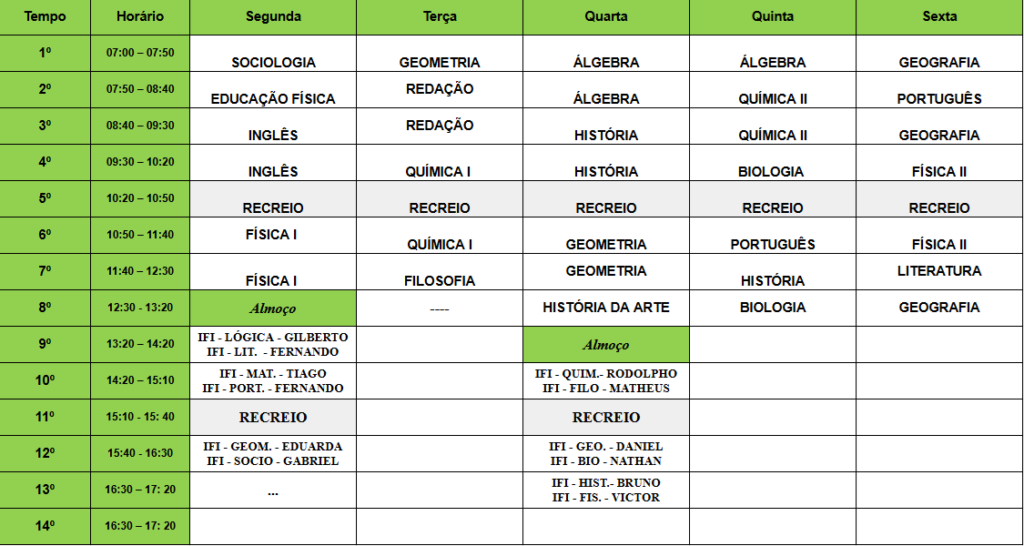 HORÁRIO Provisório – 1º EM – B – 2026