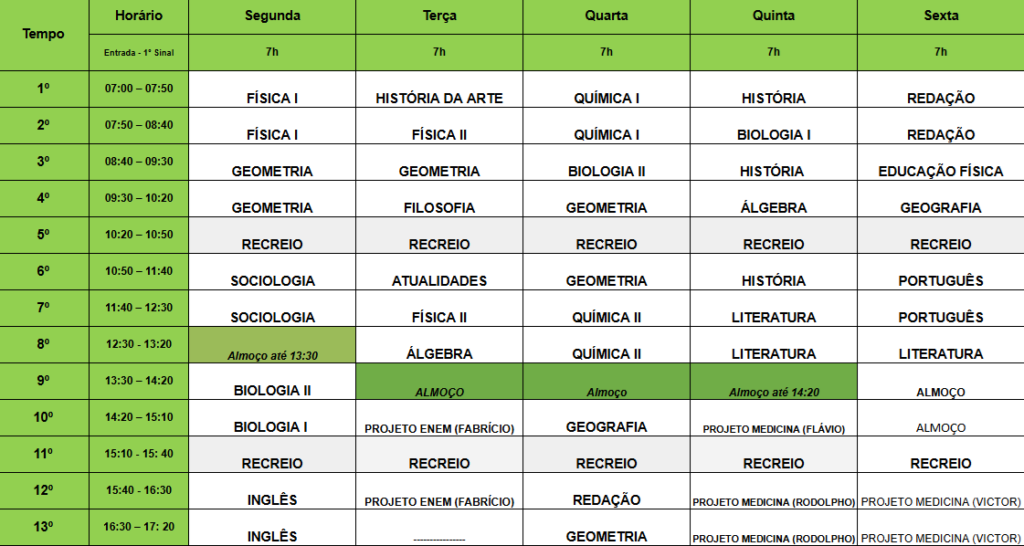 HORÁRIO Provisório 3º ANO E.M. – 2026