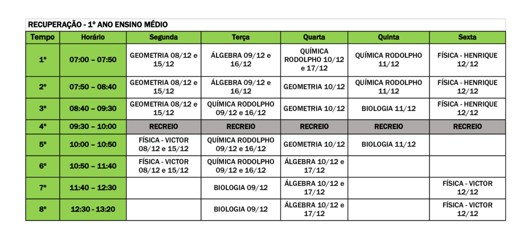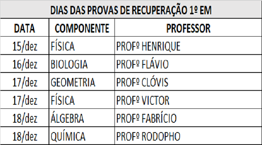 4- Conteúdo da prova de recuperação será informado durante as aulas de recuperação.